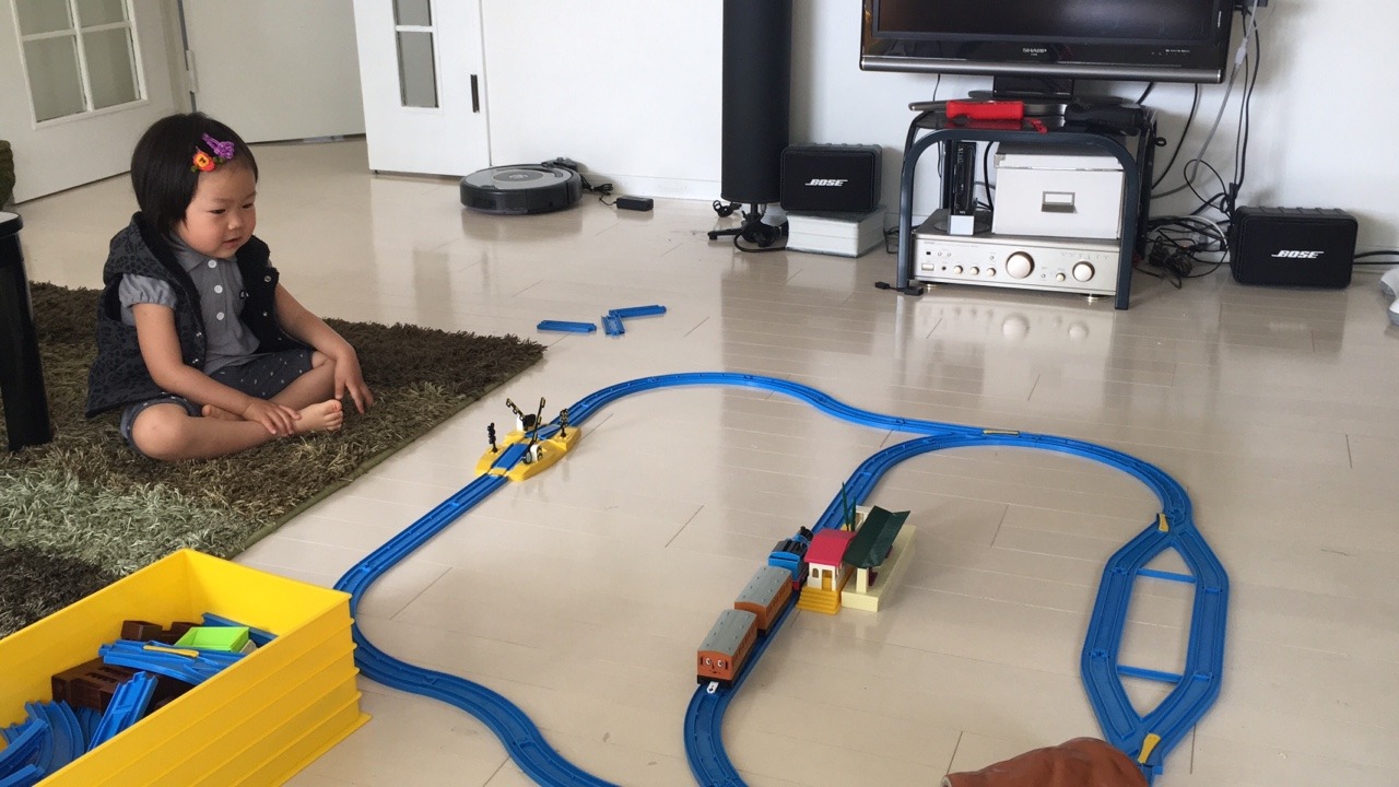 今朝は昨日買ってもらったトーマスのプラレールとマグネットパズルのClixを開封して、満足そうに遊んでいたねねにゃんです。